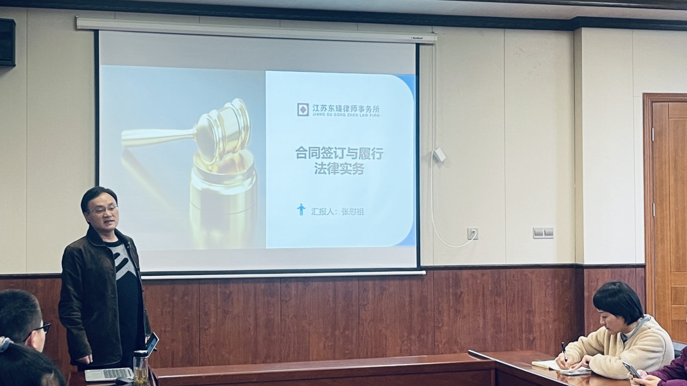 2025年12月4日下午,张慰祖律师受南京浦口区国有资产投资经营有限公司邀请,为其子公司南京浦口区粮食购销有限公司进行题为《合同签订与履行法律实务》的专题培训。