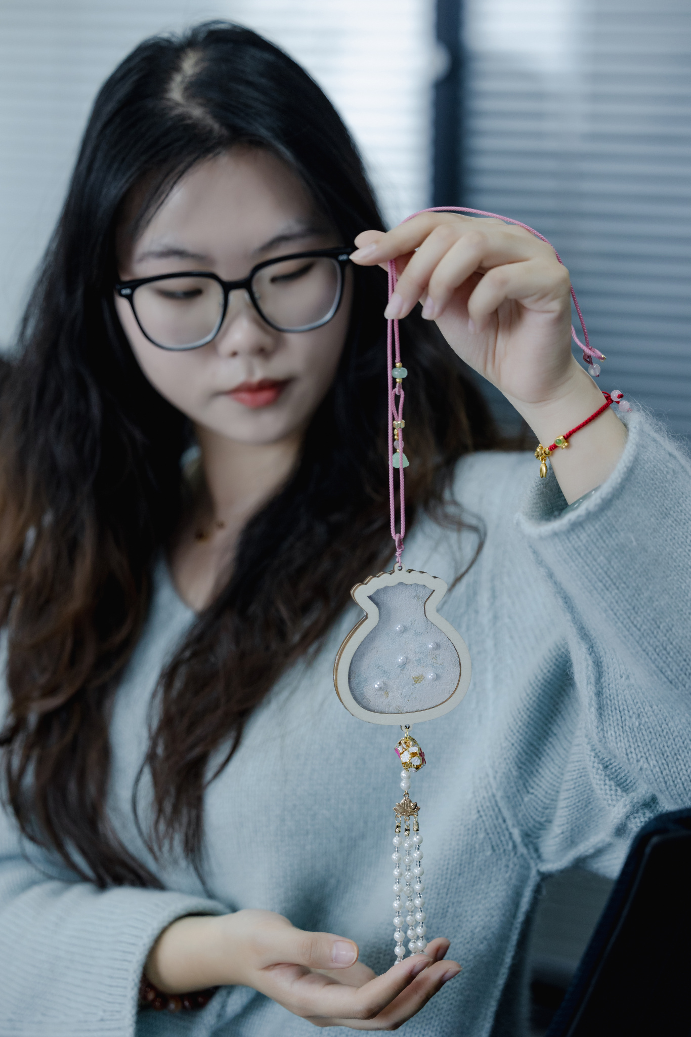 活动内容分为非遗文化讲座与手工体验两部分。特邀非遗老师首先讲解宋锦的历史、织造技艺及风铃的民俗寓意,随后指导12位参与者亲手制作宋锦风铃。从铺锦、固定到沾珠、组装,每一步都凝聚着传统技艺的匠心。活动中还设有合影、心得分享及“最佳巧手奖”评选环节,让每位仙女在指尖技艺中体验创造的乐趣,展现巾帼芳华。